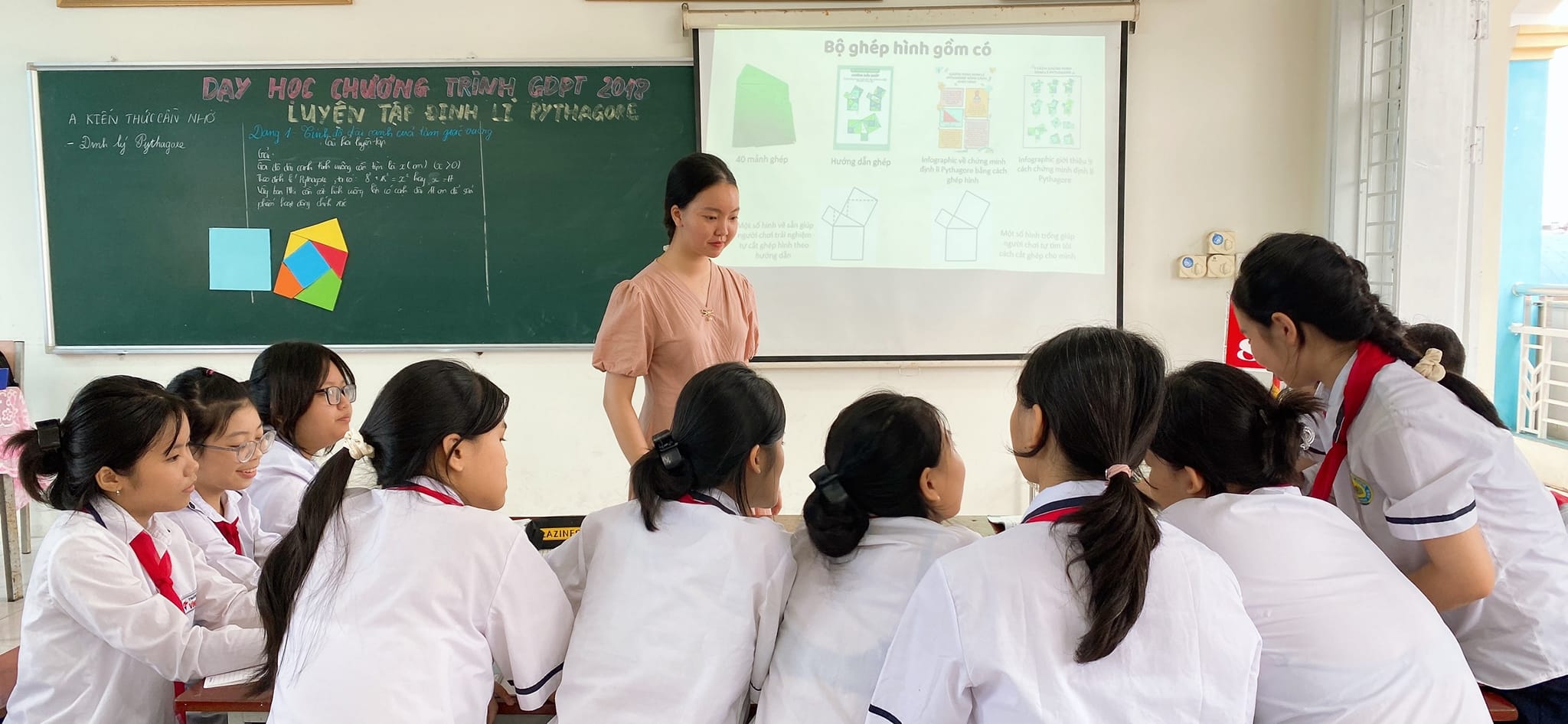Đây là năm học thứ 3 học sinh bậc THCS cả nước học theo sách giáo khoa chương trình Giáo dục phổ thông 2018. Với quyết tâm dạy học chương trình Giáo dục phổ thông mới hiệu quả, BGH trường THCS Vĩnh Niệm đã luôn sát sao chỉ đạo các tổ chuyên môn lên kế hoạch dạy học các tiết chuyên đề, đặc biệt là với SGK lớp 8. Tất cả các tiết dạy đều được chuẩn bị rất chu đáo theo hướng phát triển năng lực, phẩm chất của học sinh. Trong tiết Toán, cô giáo đã miệt mài, dày công tìm tòi, áp dụng một cách triệt để, ứng dụng hiệu quả CNTT, các phần mềm soạn giảng trình chiếu, các phương pháp đổi mới để tiết giảng đạt được kết quả cao nhất và phát huy được tính tích cực, chủ động của học sinh.Tiết Ngoại ngữ, Ngữ văn học sinh sôi nổi, hào hứng bởi GV áp dụng nhiều phương pháp dạy học tích cực, phù hợp, lồng ghép các trò chơi... kích thích sự tìm tòi, sáng tạo của HS, từ đó đã giúp các em học sinh hứng thú, dễ dàng lĩnh hội và ghi nhớ kiến thức, chủ động trong các hoạt động học tập của mình.