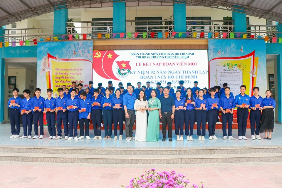 ngày càng vững mạnh. Các em học sinh của trường THCS Vĩnh Niệm được kết nạp Đoàn hôm nay là những thành viên tiêu biểu của “Lớp đoàn viên 92 năm ngày thành lập Đoàn TNCS Hồ Chí Minh (26/03/1931 - 26/03/2023)”. Các em đều là những thanh niêu ưu tú, có phẩm chất, đạo đức tốt, có nhiều cố gắng, nỗ lực trong học tập.